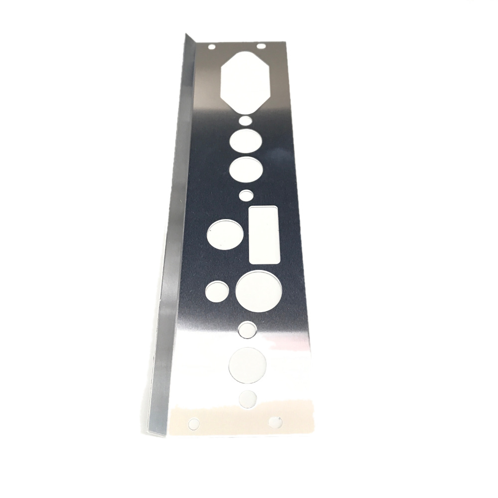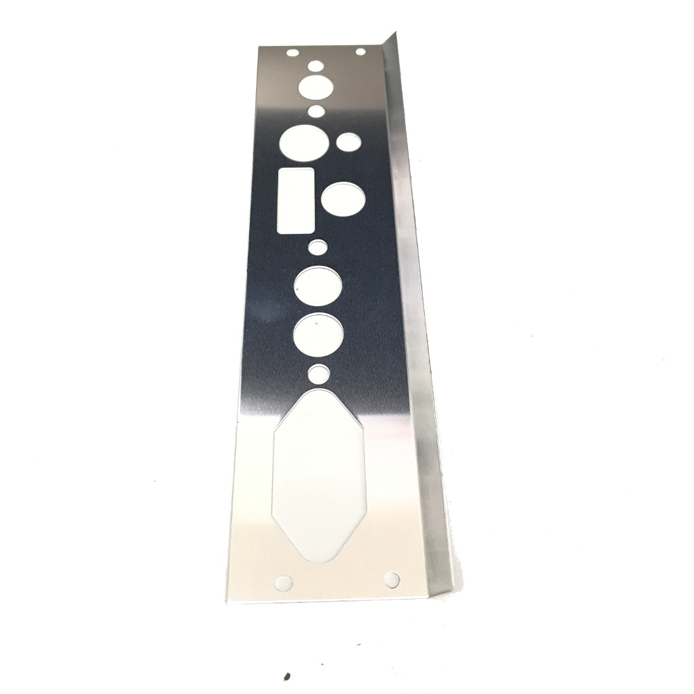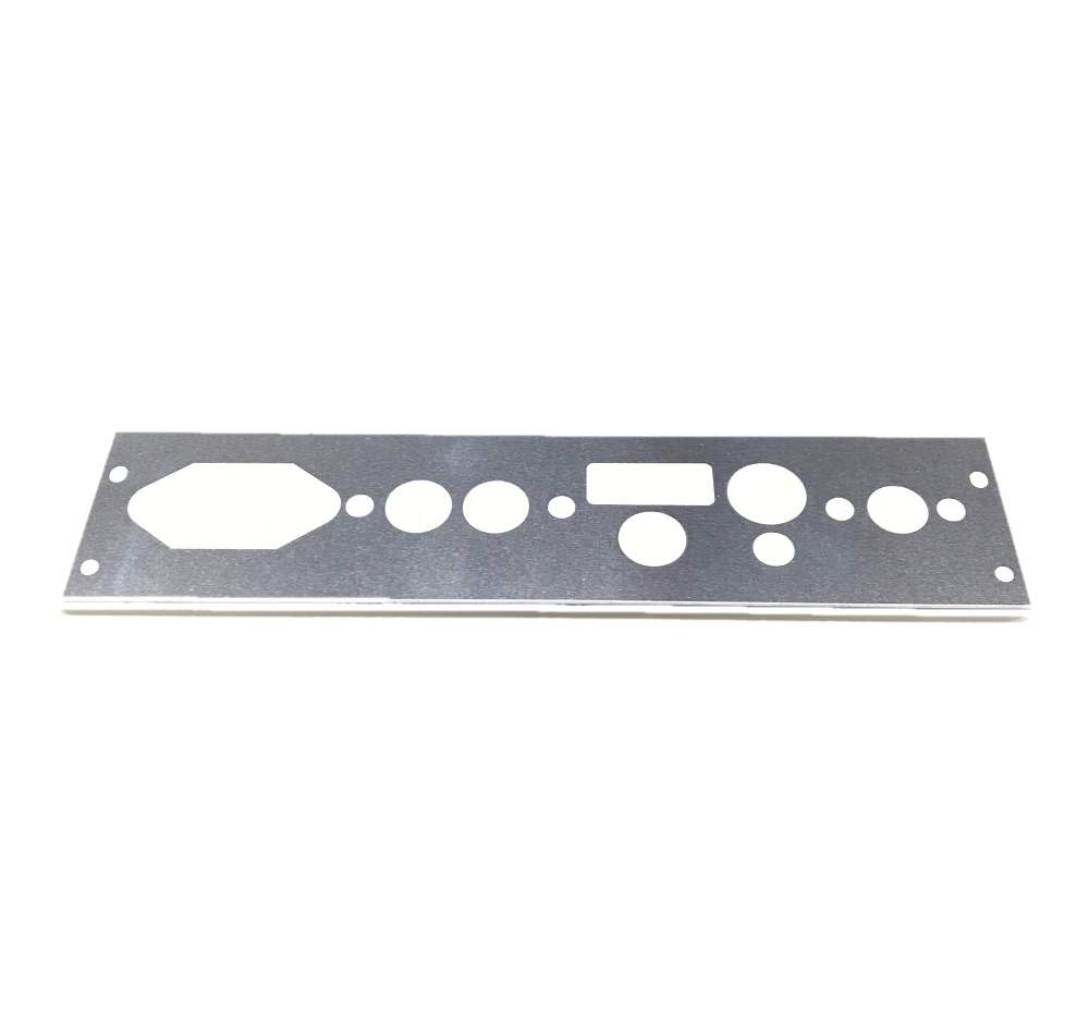 この板金プレート部品は、OA機器・電子制御機器の部品として使用されている”コネクターパネル”です。電気製品の場合には、配線やその配線の末端にあるスイッチ等を接続・位置決めをする為のブラケットとして使用されています。当社の場合には、電気製品・OA機器製品向けに数多くの板金部品を製造しており、その結果、コントロールパネルの製造におけるポイントや用途に応じた材質提案も可能となっています。